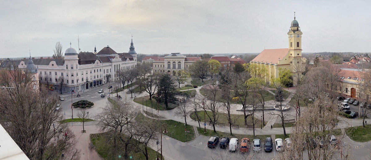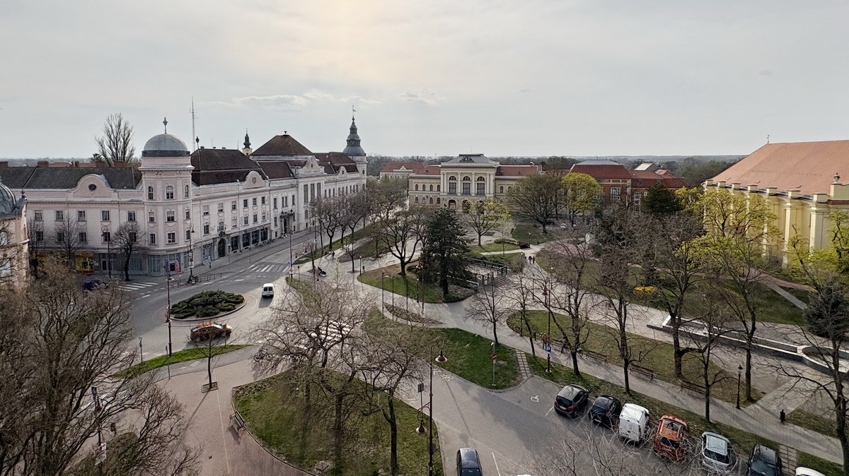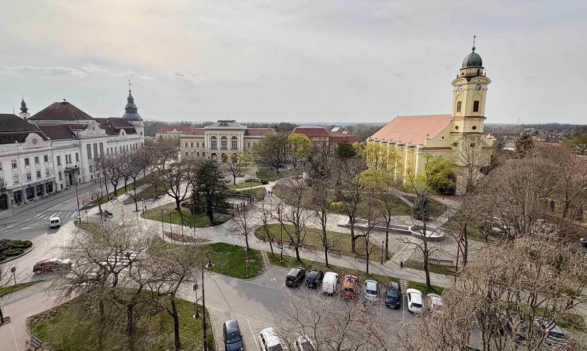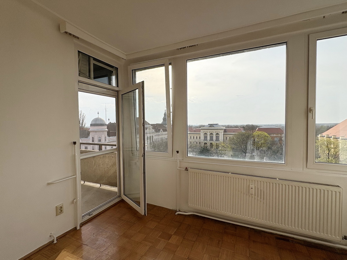 Szentes történelmi belvárosának főterére néző, panorámás,