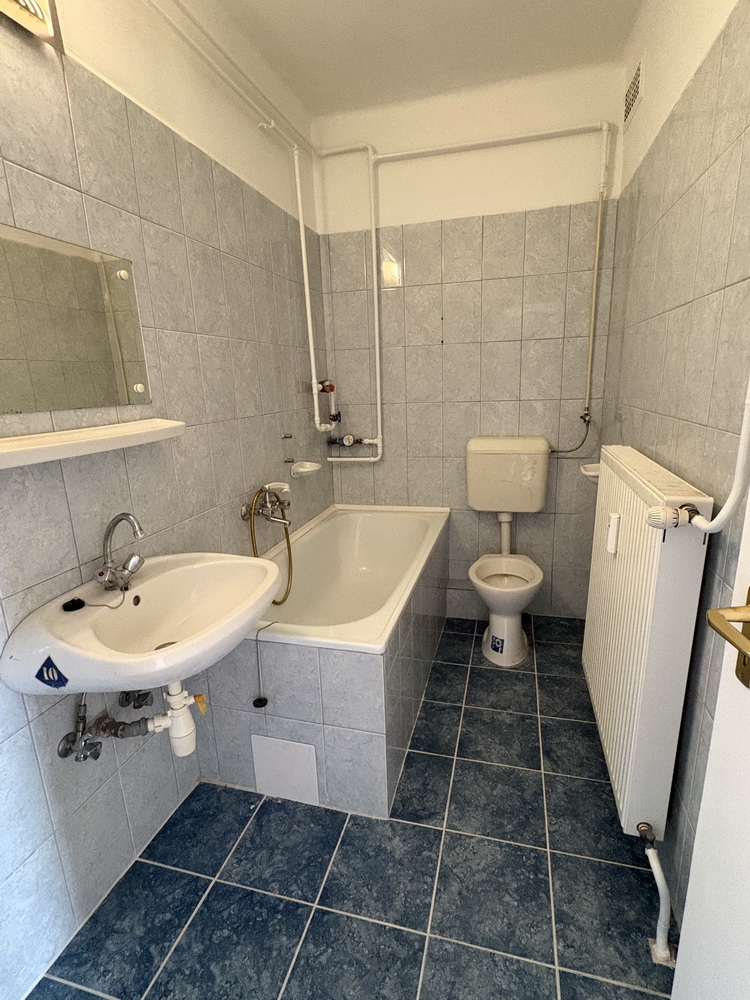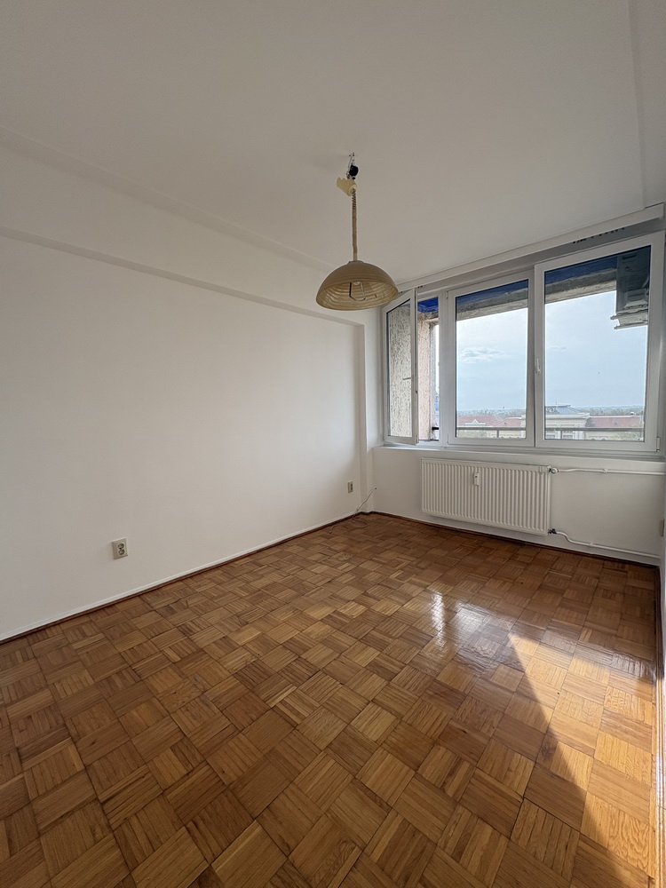 Elosztás: 2 egész szoba, az egyik erkély kapcsolattal, kamra/gardrób, konyha, fürdőszoba WC-vel és káddal, közlekedő folyosó