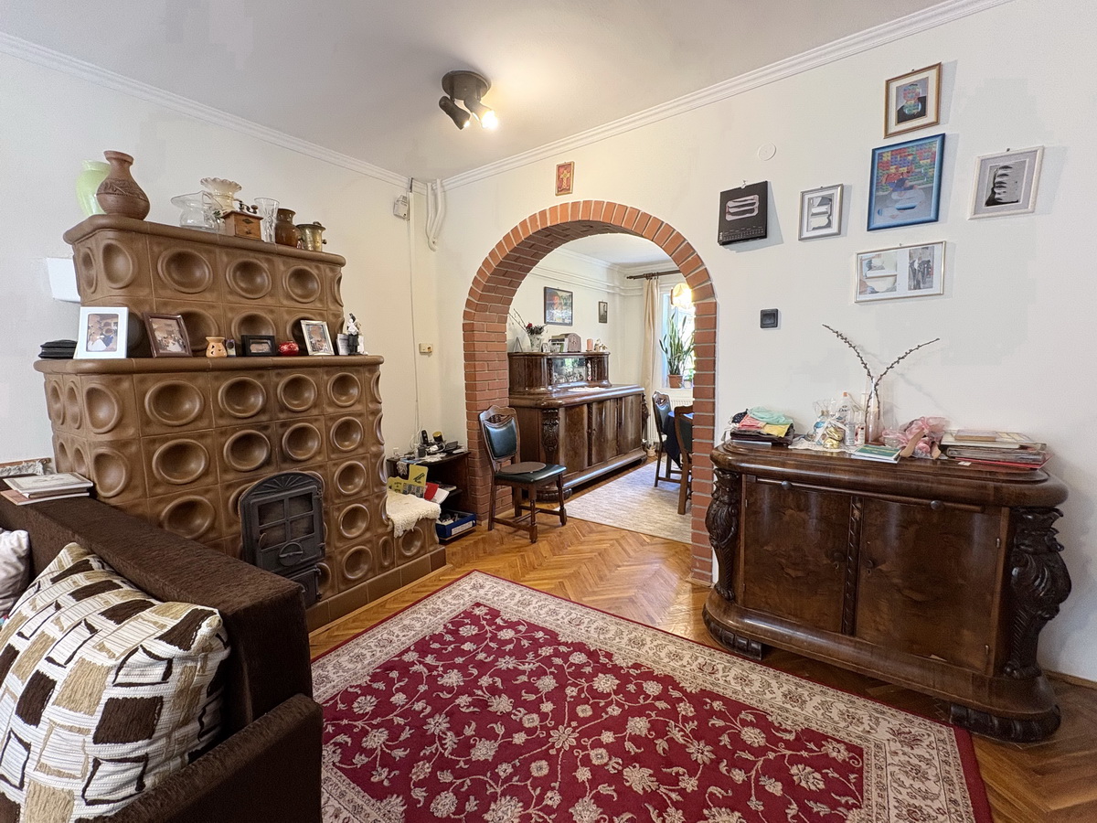A nappali ékessége a hangulatos, fa- és széntüzelésű, épített cserépkályha, amely alternatív fűtésként szolgál.