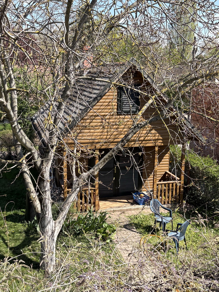 Az udvarban egy kb. 15 m²-es, hőszigetelt, erdélyi típusú, padlásteres faház található, amely lakható, közművesített (víz, villany, csatorna), kályhával fűthető, így ideális vendégháznak, irodának vagy hobbitérnek.