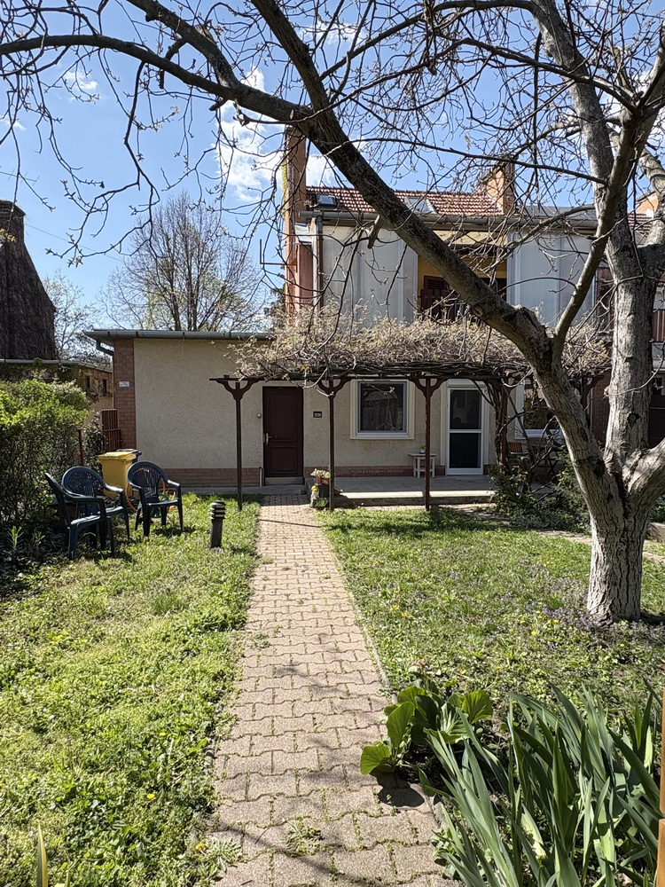 Frekventált, mégis nyugodt és barátságos lakókörnyezetben kínálunk megvételre egy szélső sorházi ingatlant, amely különlegessége a nagyobb méretű, gondozott kert és a meghitt, természetközeli hangulat, melyben egy erdélyi típusú faházikó is rendelkezésre áll.