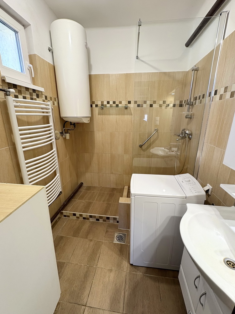 Modernizált fürdőszoba kb. 7 éve, víz és csatornahálózattal együtt